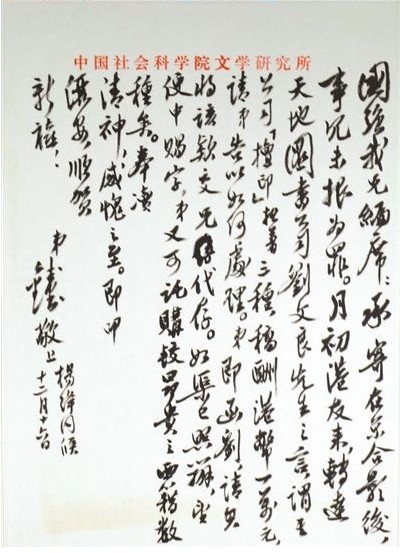 上圖釋文 錢鐘書一九八年十二月十六日致李國強 國強我兄編席:承寄在京合影后,事冗未報為罪。月初港友來,轉達天地圖書公司劉文良先生之言,謂其公司“擅印”拙著三種,稿酬港幣一萬元,請弟告以如何處理。弟即函劉,請其收該款交兄代存。如渠已照辦,望便中賜字,弟又可購較昂貴之西籍數(shù)種矣。奉瀆清神,感愧之至。即叩 儷安,順賀 新禧!弟錢鍾