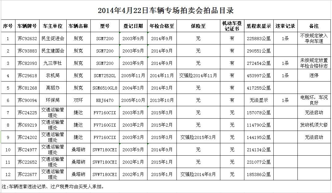 有意競買者須持有效證件并交納每輛車1萬元保證金辦理報名手續(xù),報名截止至4月21日16時。
