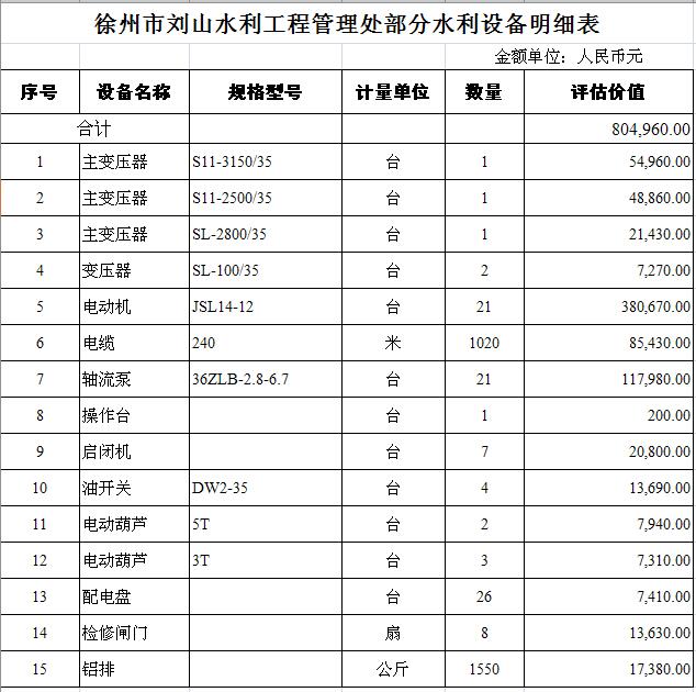 詳情請登陸江蘇省產(chǎn)權(quán)交易所網(wǎng)站查詢“關(guān)于二次變更徐州市劉山水利工程管理處部分水利設(shè)備轉(zhuǎn)讓公告的公告”。