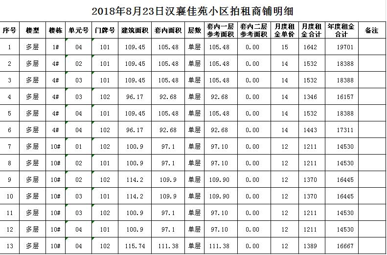 關(guān)注微信公眾號我公司受委托,定于2018年8月23日10時在中山南路55號本公司拍賣廳對以下小區(qū)商鋪公開拍租:湖西雅苑、和風(fēng)雅致、漢襄佳苑、尚景園、潤和園、嘉和雅苑等。商鋪共數(shù)十套,均為空房,面積分別為一百至數(shù)百平方米不等。租期均為3年。