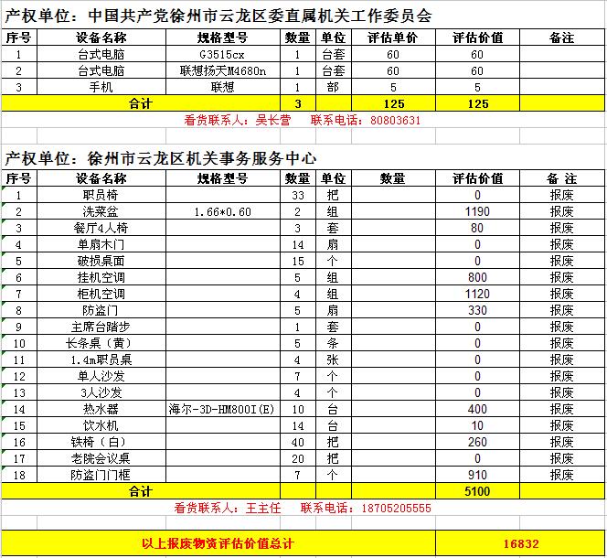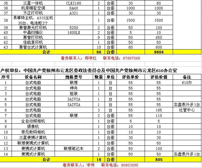 1. 云龍區(qū)數(shù)家單位廢舊辦公設(shè)備一批,主要包括:廢舊電腦、復(fù)印打印機、攝像機、空調(diào)、辦公家具等。